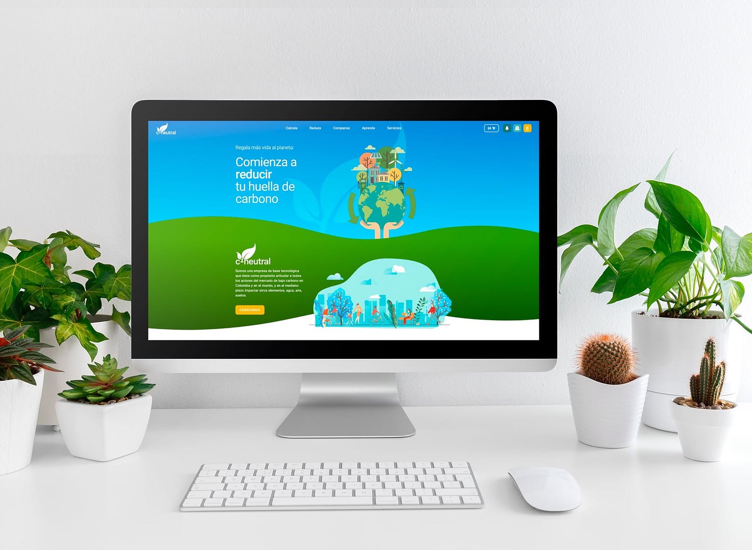 C-neutral, una innovadora startup del sector de sostenibilidad en Colombia, se enfrentaba al desafío de traducir su ambiciosa misión —articular el mercado de bajo carbono— en una plataforma digital que fuera a la vez educativa, funcional y persuasiva. Necesitaban un sitio web que no solo presentara su propósito, sino que también guiara activamente a los usuarios, desde empresas hasta individuos, en el camino hacia la neutralidad de carbono, convirtiendo una idea compleja en acciones concretas y medibles.