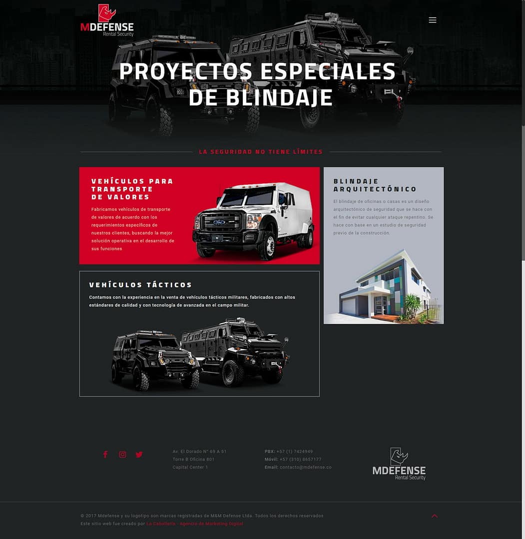 Mdefense, una empresa perteneciente al prestigioso 7M Group y especialista en el sector automotriz de alta seguridad en Colombia, enfrentaba un desafío crucial: su presencia digital no reflejaba la excelencia y sofisticación de sus servicios de blindaje vehicular.